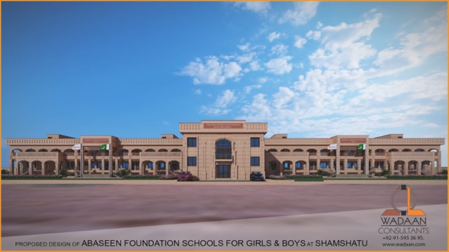 Abaseen Foundation School is Three-storey school building located in Peshawar. Wadaan consultant carried out the Architecture Design and Prime Design Consultant has skillfully successfully completed the Structure Design task of the Structure. The Project include three Blocks separated by two expansion joints to avoid structural complexity and irregularity. The main building is designed with a special moment-resisting frame system, which can efficiently dissipate the energy imparted to the building during seismic events.